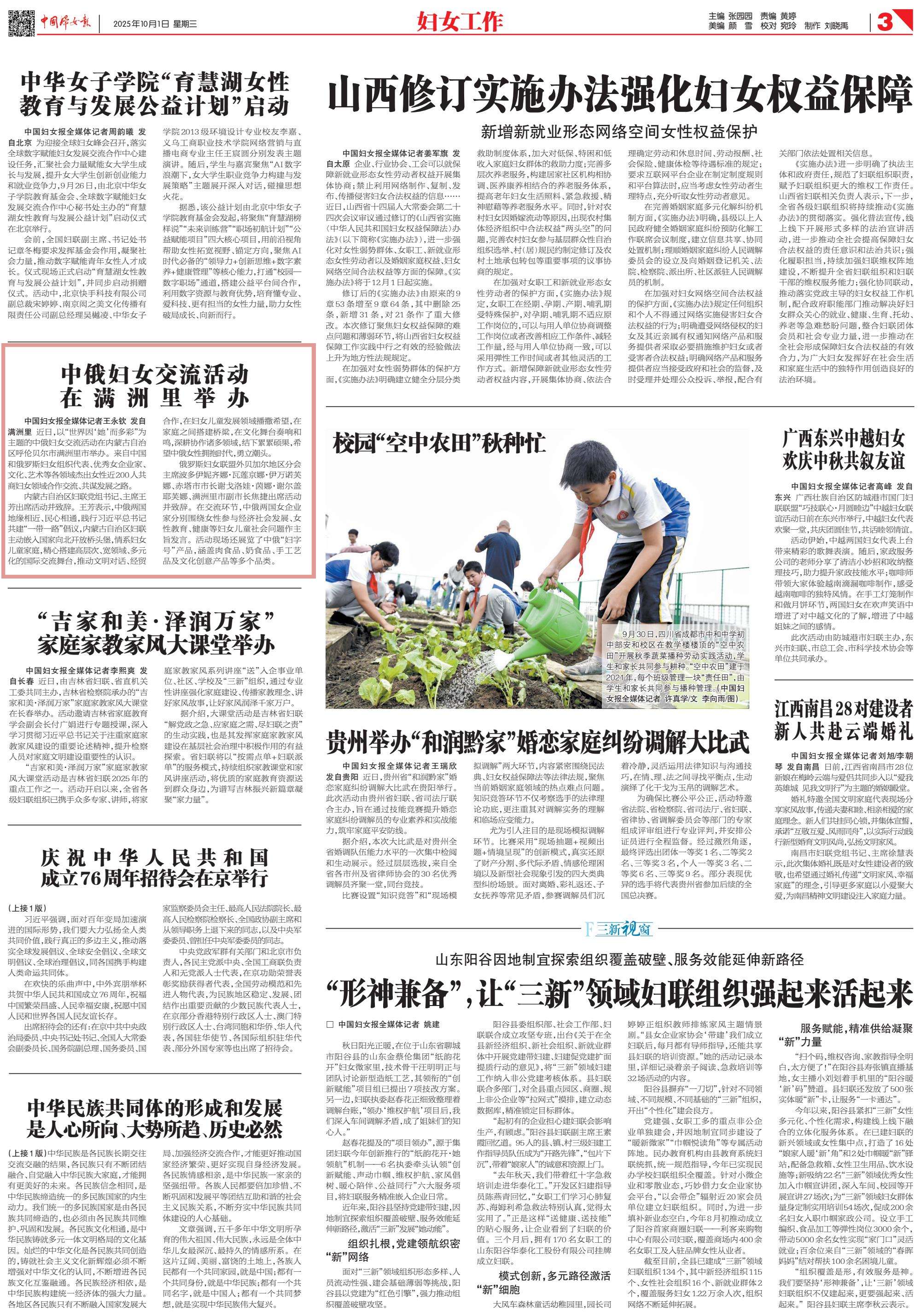 2025年10月1日,《中國婦女報》第3版刊發(fā)題為《中俄婦女交流活動在滿洲里舉辦》的文章,報道了中俄婦女交流活動在內(nèi)蒙古自治區(qū)呼倫貝爾市滿洲里市舉辦,來自中國和俄羅斯各領(lǐng)域杰出女性近200人共商婦女領(lǐng)域合作交流、共謀發(fā)展之路。