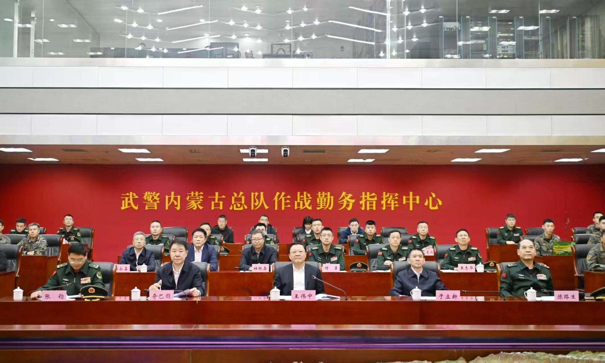 在武警內(nèi)蒙古總隊,王偉中來到作戰(zhàn)勤務指揮中心,仔細聽取部隊建設和指揮中心運行情況介紹。他指出,武警內(nèi)蒙古總隊是一支有著光榮歷史的英雄部隊,希望部隊繼續(xù)關心支持自治區(qū)經(jīng)濟社會發(fā)展,加強練兵備戰(zhàn),做好應急準備,當好內(nèi)蒙古高質量發(fā)展和長治久安的堅強基石、忠誠衛(wèi)士,為全區(qū)社會大局穩(wěn)定和人民群眾安居樂業(yè)保駕護航。