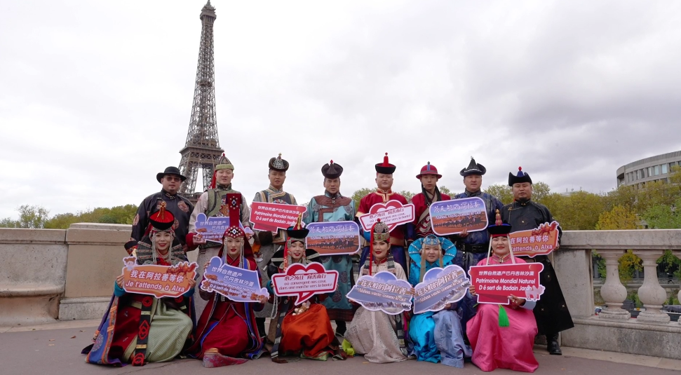 在法國(guó)巴黎市的夏約宮廣場(chǎng)、埃菲爾鐵塔、香榭麗舍大街、巴黎圣母院、凱旋門、國(guó)際大學(xué)城,比利時(shí)布魯塞爾市大廣場(chǎng)、藝術(shù)山等地,阿拉善的烏蘭牧騎演員開(kāi)啟了一場(chǎng)場(chǎng)融合蒙古族華服走秀與快閃歌舞表演,“阿拉善在哪里?”“這服裝太酷了!”“怎么有萬(wàn)馬奔騰的感覺(jué)!”“想去看一看!”“這沙漠也太壯觀了!”快閃路演吸引了法國(guó)、比利時(shí)以及來(lái)自世界各地的游客駐足觀看,喝彩不斷,沉醉其中。