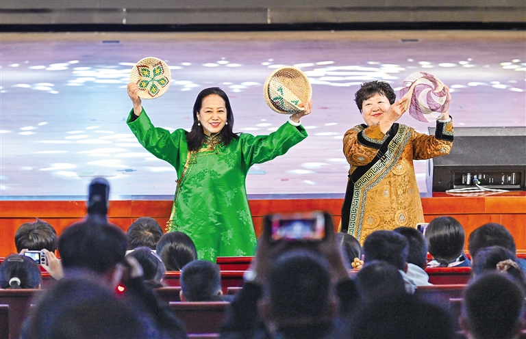 對接會設(shè)在北京一零一中學(xué)圓明園校區(qū),現(xiàn)場,內(nèi)蒙古特色非遺、歌舞表演異彩紛呈,鮮活展現(xiàn)絢爛多彩的北疆文化。北京交通大學(xué)現(xiàn)代旅游研究學(xué)院院長張輝作“研學(xué)旅游高質(zhì)量發(fā)展”主旨演講。自治區(qū)文旅廳發(fā)布了2025年研學(xué)旅游新品,重磅推出深度融合內(nèi)蒙古的自然地理、歷史文化、科學(xué)技術(shù)與民族風(fēng)情的4條主線、20條支線的研學(xué)旅行路線,還系統(tǒng)推出一批具有地域特色與文化內(nèi)涵的精品主題研學(xué)旅游產(chǎn)品,全方位展示了內(nèi)蒙古研學(xué)旅游的獨特魅力和發(fā)展?jié)摿?。?nèi)蒙古藝術(shù)劇院烏蘭恰特藝術(shù)培訓(xùn)中心推介了北疆文化藝術(shù)研學(xué)產(chǎn)品;中國鐵路呼和浩特局發(fā)布京蒙研學(xué)旅游專列計劃,并進行京蒙兩地研學(xué)公司客源互通簽約儀式;中國旅游協(xié)會研學(xué)旅行分會與內(nèi)蒙古自治區(qū)旅游協(xié)會進行合作簽約?;顒舆€設(shè)置“少年那達慕”互動體驗,吸引不少青少年現(xiàn)場打卡體驗北疆文化?!皟?nèi)蒙古是一個自然與人文交織的遼闊課堂,期待走進內(nèi)蒙古,用腳步丈量、用心靈感受內(nèi)蒙古。”北京教育學(xué)院豐臺分院附屬學(xué)校學(xué)生高晟恩說。