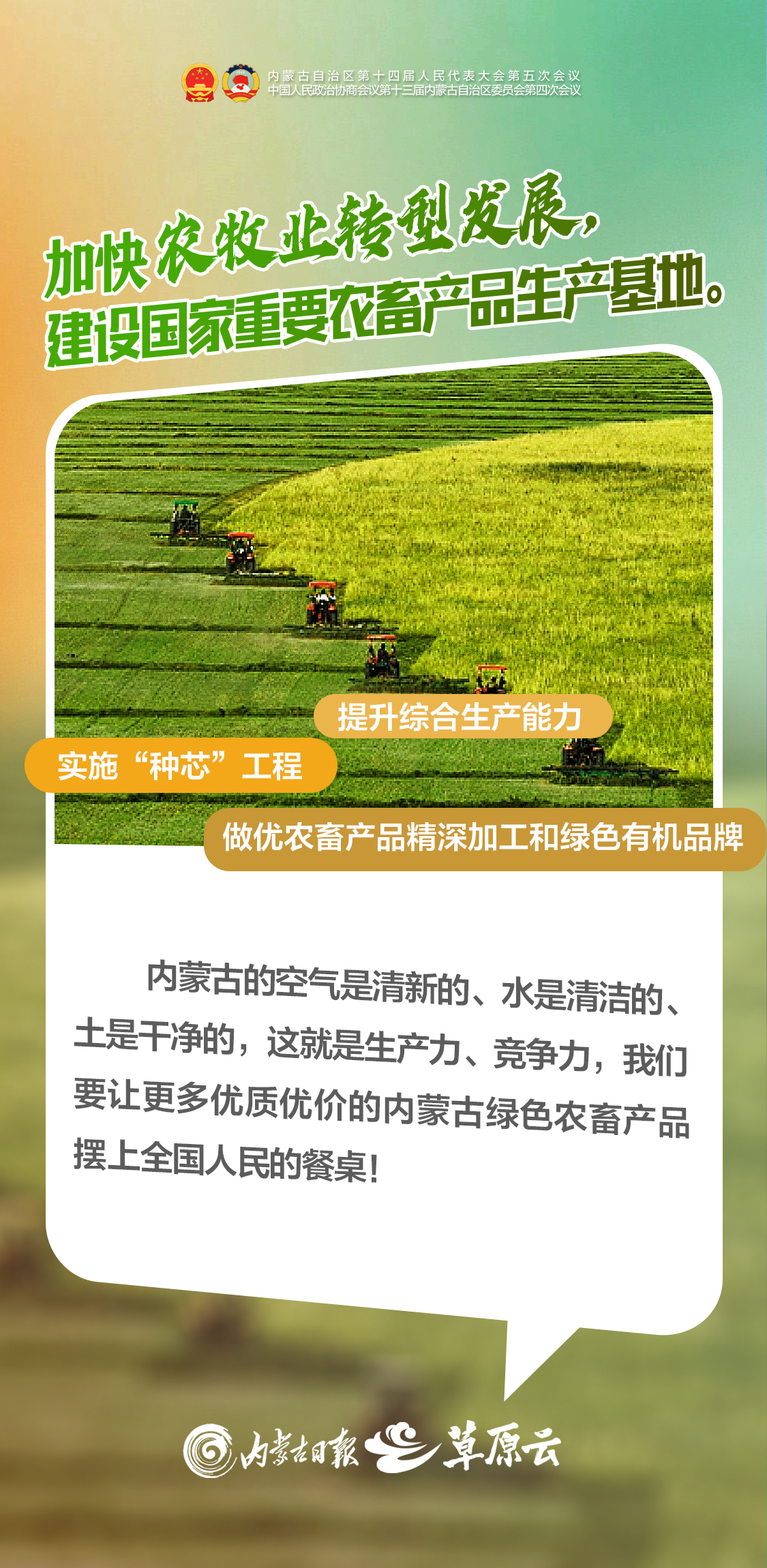 建設(shè)“兩個(gè)屏障”、“兩個(gè)基地”、“一個(gè)橋頭堡”,是習(xí)近平總書記著眼全國發(fā)展大局賦予內(nèi)蒙古的戰(zhàn)略定位和使命任務(wù),是自治區(qū)全面推進(jìn)中國式現(xiàn)代化的根本遵循。