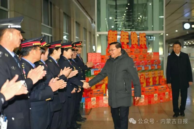 春節(jié)將至,首府的街頭張燈結(jié)彩,處處洋溢著喜慶祥和的節(jié)日氛圍。王偉中一行首先來到賽罕區(qū)一中隊交警執(zhí)勤崗點,親切慰問正在執(zhí)勤的民警,送上新春美好祝福,感謝大家的默默堅守和無私付出。王偉中叮囑大家注意防寒保暖,以良好狀態(tài)守護城市平安暢通。在萬正廣場環(huán)衛(wèi)站,王偉中一行看望慰問辛勤工作的環(huán)衛(wèi)工人。王偉中說,你們是城市的“美容師”,每天起早貪黑、風雨無阻,用辛勤勞動換來了城市的清潔美麗,大家辛苦了。有關部門要多關心他們的工作和生活,細化關愛舉措,健全保障機制,在全社會營造尊重環(huán)衛(wèi)工人、珍愛生活環(huán)境的良好氛圍。隨后,王偉中一行來到呼和浩特火車東站,仔細詢問春運期間人流車流、安全保障等情況。王偉中強調(diào)要精準把握春節(jié)群眾出行規(guī)律,加強運力調(diào)配、客流疏導和秩序維護,深入排查整治安全隱患,切實提升服務質(zhì)量,讓群眾出行更安全、更舒心。