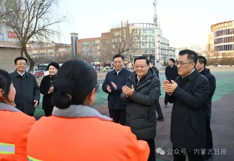2月13日,自治區(qū)黨委書記、人大常委會主任王偉中來到萬正廣場環(huán)衛(wèi)站,看望慰問辛勤工作的環(huán)衛(wèi)工人。草原云·內(nèi)蒙古新聞網(wǎng)記者 馬建兵 攝