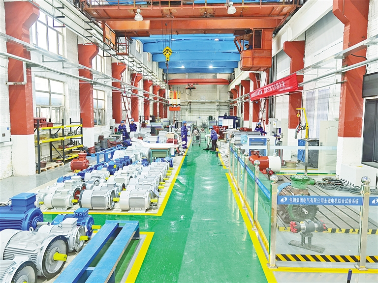 包鋼集團(tuán)電氣有限公司稀土永磁電機(jī)組裝車(chē)間。