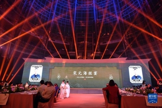 當(dāng)日,福建泉州石獅市舉辦“閩菜地標(biāo)美食城市”授牌暨“宋元海絲宴”推介儀式。“宋元海絲宴”以南宋福建泉州石獅籍美食家林洪著作《山家清供》為還原藍(lán)本,兼收閩南名菜,集山珍、海味于一席,將菜品、宴席與宋元器皿、場景、樂曲、詩詞等融合,展現(xiàn)宋元時(shí)期世界海洋商貿(mào)中心獨(dú)特的美食文化。新華社記者 魏培全 攝