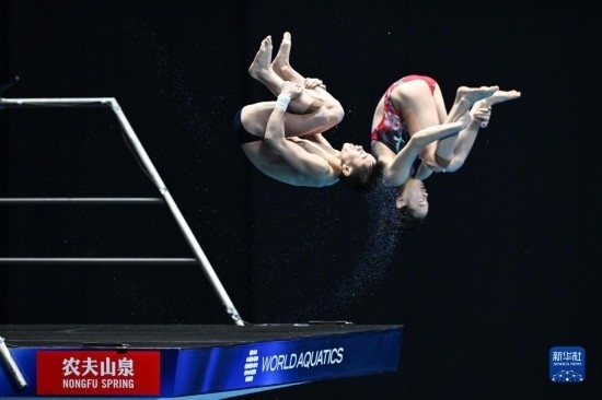 當(dāng)日,在2023年福岡世界游泳錦標(biāo)賽跳水混雙10米臺(tái)決賽中,中國組合王飛龍/張家齊以總分339.54分的成績奪得冠軍。