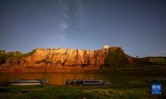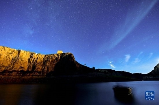黃河老牛灣位于內(nèi)蒙古自治區(qū)和山西省交界處。夜空下,峽谷兩岸壁立千仞,黃河奔流不息,明長城依山而行,風(fēng)光壯美。