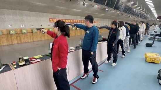 射擊隊訓(xùn)練館內(nèi),加油助威聲此起彼伏。一邊是準備瞄準射擊的運動員,另一邊則是由教練員、運動員組成的“啦啦隊”。在熱烈的氛圍中,隊員們一次次扣動扳機,完成射擊。
