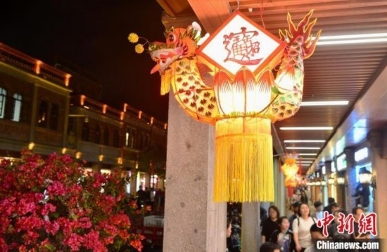 圖為2月20日晚,泉州中山路騎樓兩側(cè),花燈流光溢彩,美不勝收。中新網(wǎng)記者 張斌 攝