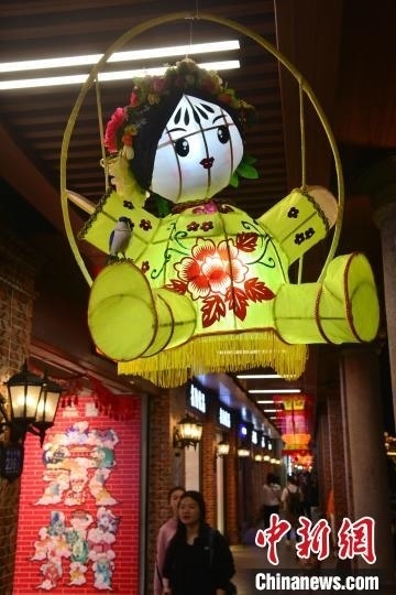 圖為2月20日晚,家長帶著小孩在泉州中山路賞燈。中新網(wǎng)記者 張斌 攝