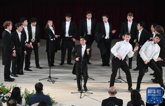 3月21日,國家開發(fā)銀行阿卡貝拉合唱團(tuán)在音樂會(huì)上演出。新華社記者 任超 攝