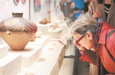 圖為參觀者在國(guó)家海洋博物館觀看“大河文明”展。