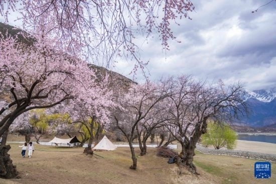 西藏林芝市米林市索松村是欣賞南迦巴瓦峰景觀的最佳位置之一。這里面向南迦巴瓦峰,腳下是蜿蜒的雅魯藏布江。林芝市第二十一屆桃花旅游文化節(jié)期間,雅魯藏布江邊的桃花次第盛開,與雪山、大江相襯,獨(dú)特的景色吸引著各地游客慕名而來(lái),共赴一場(chǎng)“桃花之約”。