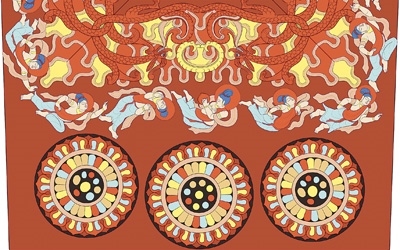 云岡石窟第一窟窟頂紋飾(局部)。