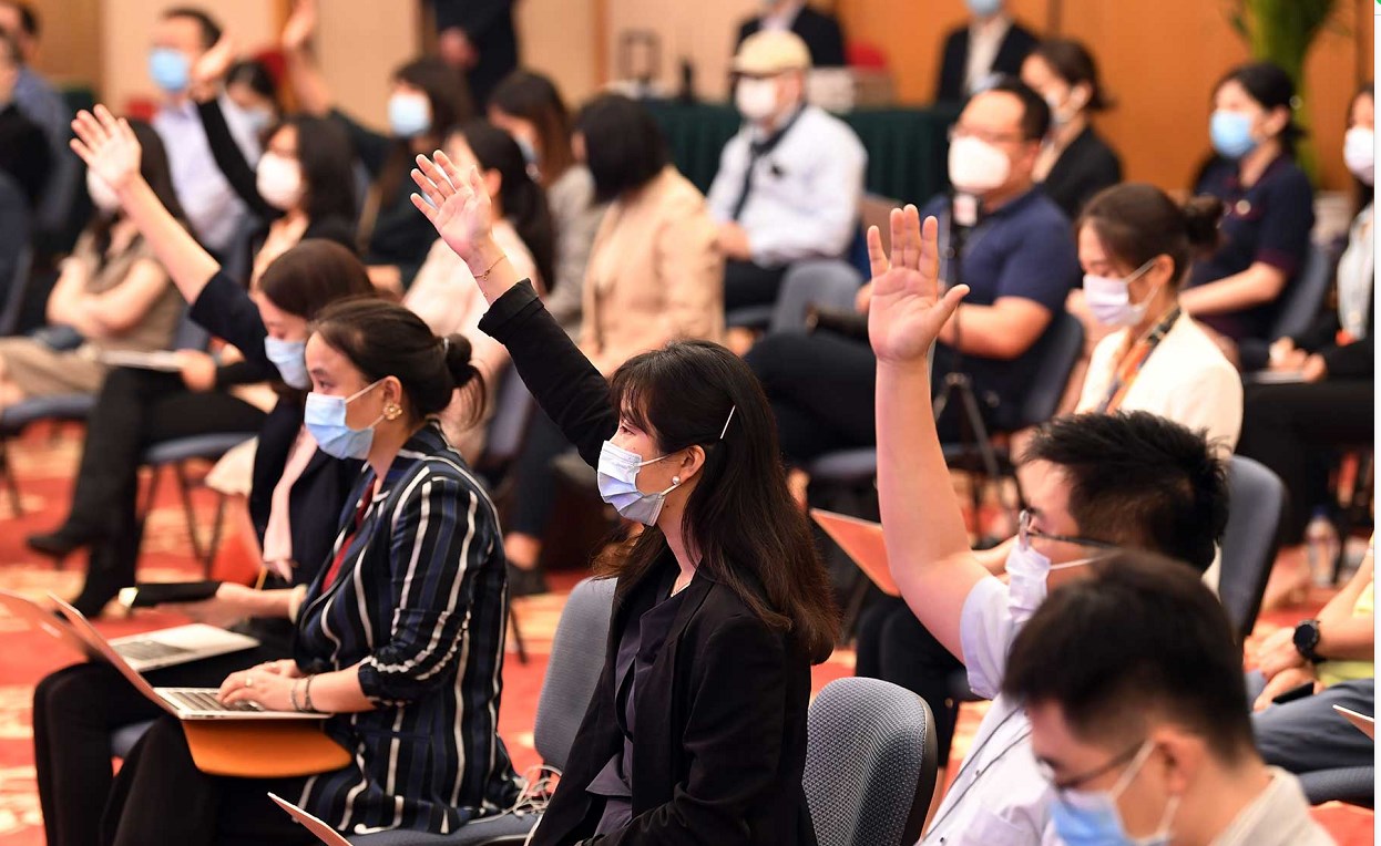 5月24日,十三屆全國(guó)人大三次會(huì)議在北京人民大會(huì)堂舉行視頻記者會(huì),國(guó)務(wù)委員兼外交部長(zhǎng)王毅就中國(guó)外交政策和對(duì)外關(guān)系回答中外