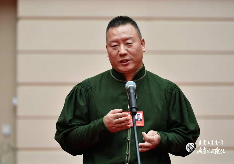 自治區(qū)政協(xié)委員郭萬富回答記者提問。內(nèi)蒙古日報記者 馬建荃攝