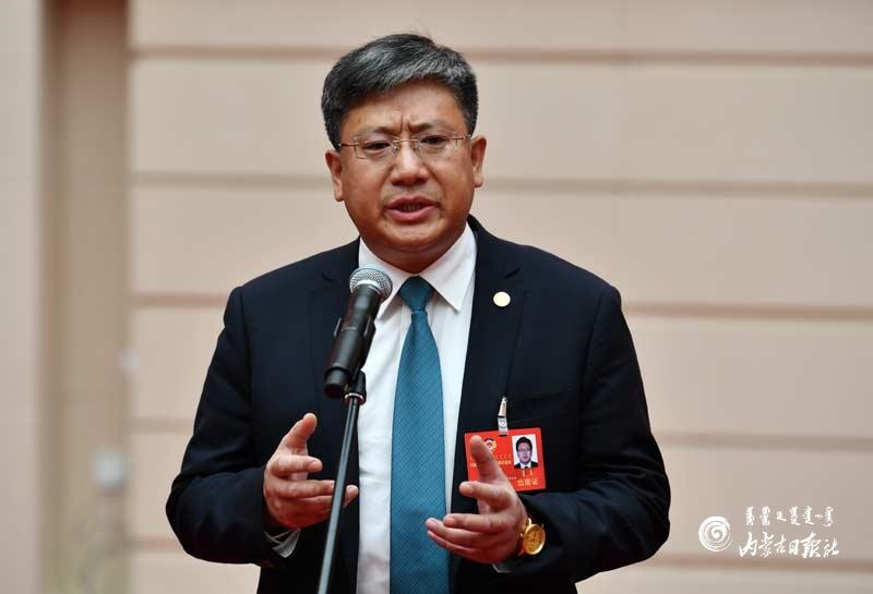 自治區(qū)政協(xié)委員于學(xué)軍回答記者提問。內(nèi)蒙古日報記者 馬建荃攝