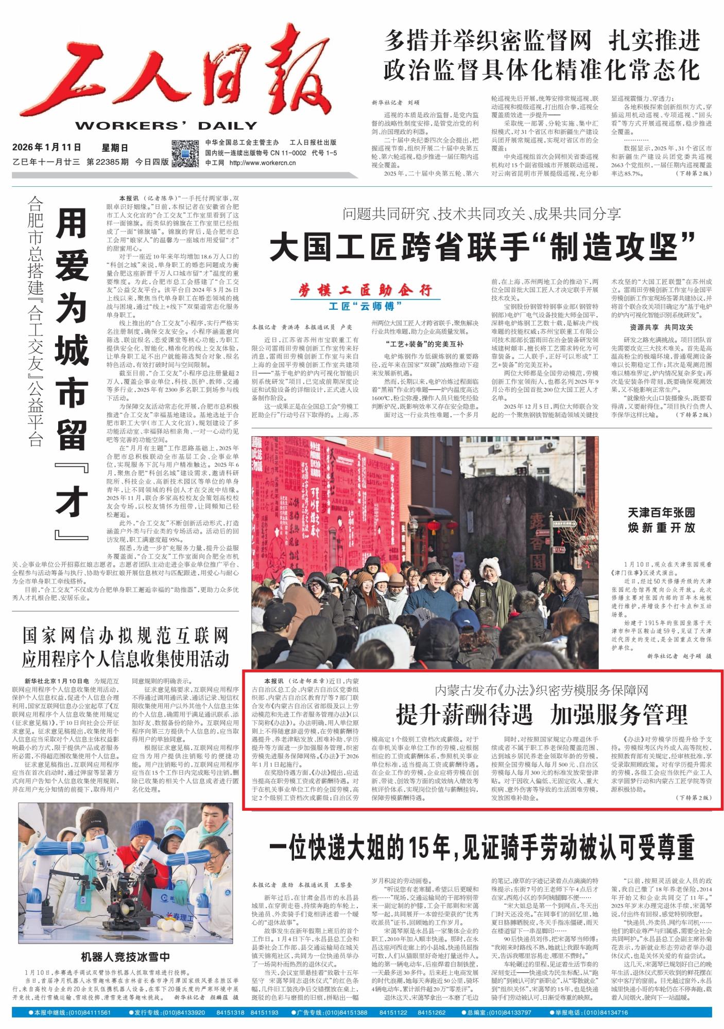 2026年1月11日,《工人日報》頭版刊發(fā)了《提升薪酬待遇 加強(qiáng)服務(wù)管理》的文章,報道了2026年1月1日起,內(nèi)蒙古7部門聯(lián)合施行省部級及以上勞模服務(wù)管理辦法,明確用人單位原則上不得隨意辭退勞模,從薪酬提升、退休榮譽(yù)津貼發(fā)放、困難補(bǔ)助、學(xué)歷提升支持、失業(yè)優(yōu)先再就業(yè)及住房優(yōu)先保障等方面強(qiáng)化服務(wù)保障,并建立屬地管理及違法違紀(jì)等情形的退出機(jī)制。