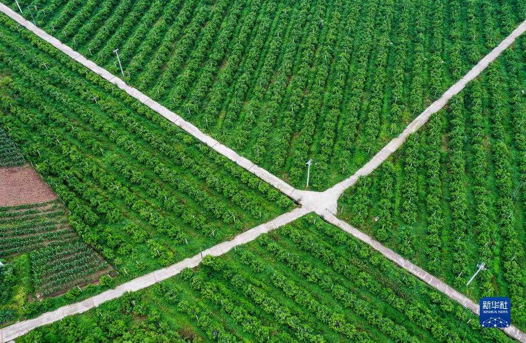 這是5月25日拍攝的重慶市忠縣新立鎮(zhèn)柑橘種植基地(無人機照片)。新華社記者 王全超 攝