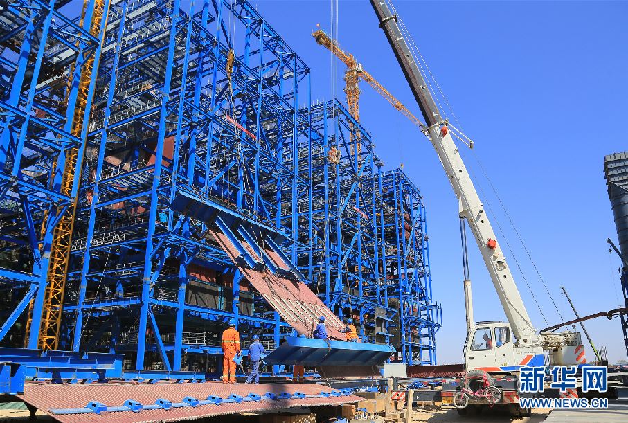 內(nèi)蒙古久泰新材料有限公司年產(chǎn)100萬噸乙二醇項(xiàng)目鍋爐島施工現(xiàn)場(chǎng)。 -
