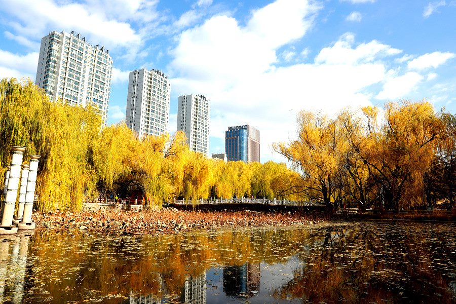 深秋時(shí)節(jié),位于呼和浩特市烏蘭察布西路南側(cè)的滿都海公園,秋色浸染,滿目金黃。