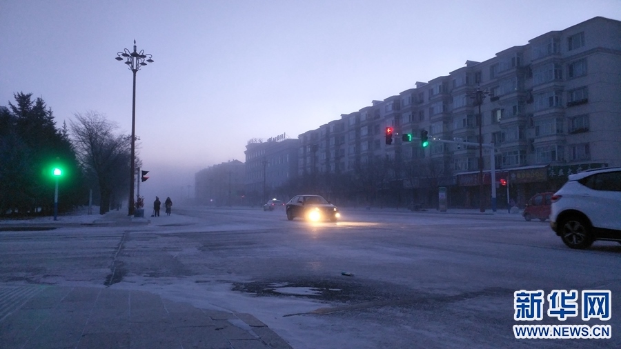 受強冷空氣影響,內(nèi)蒙古自治區(qū)根河市迎來極寒天氣。14日,根河市烏力庫瑪氣溫降至-44.2℃,創(chuàng)今冬以來的最低溫度。上午8時30分許,當?shù)亟诸^“冰霧”彌漫,寒氣刺骨,能見度不足百米,過往車輛開啟霧燈,放慢車速緩慢前行,外出行人全副武裝。